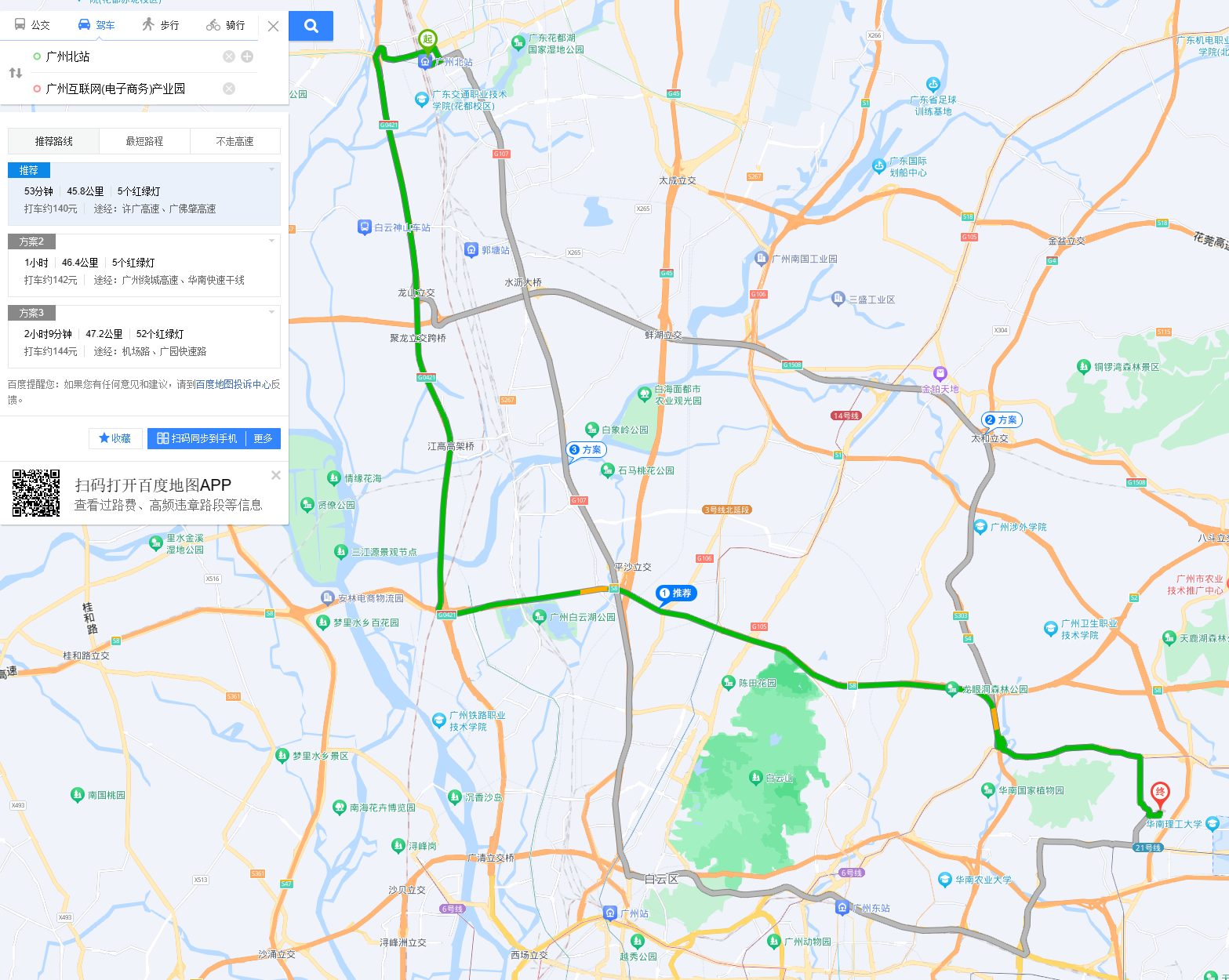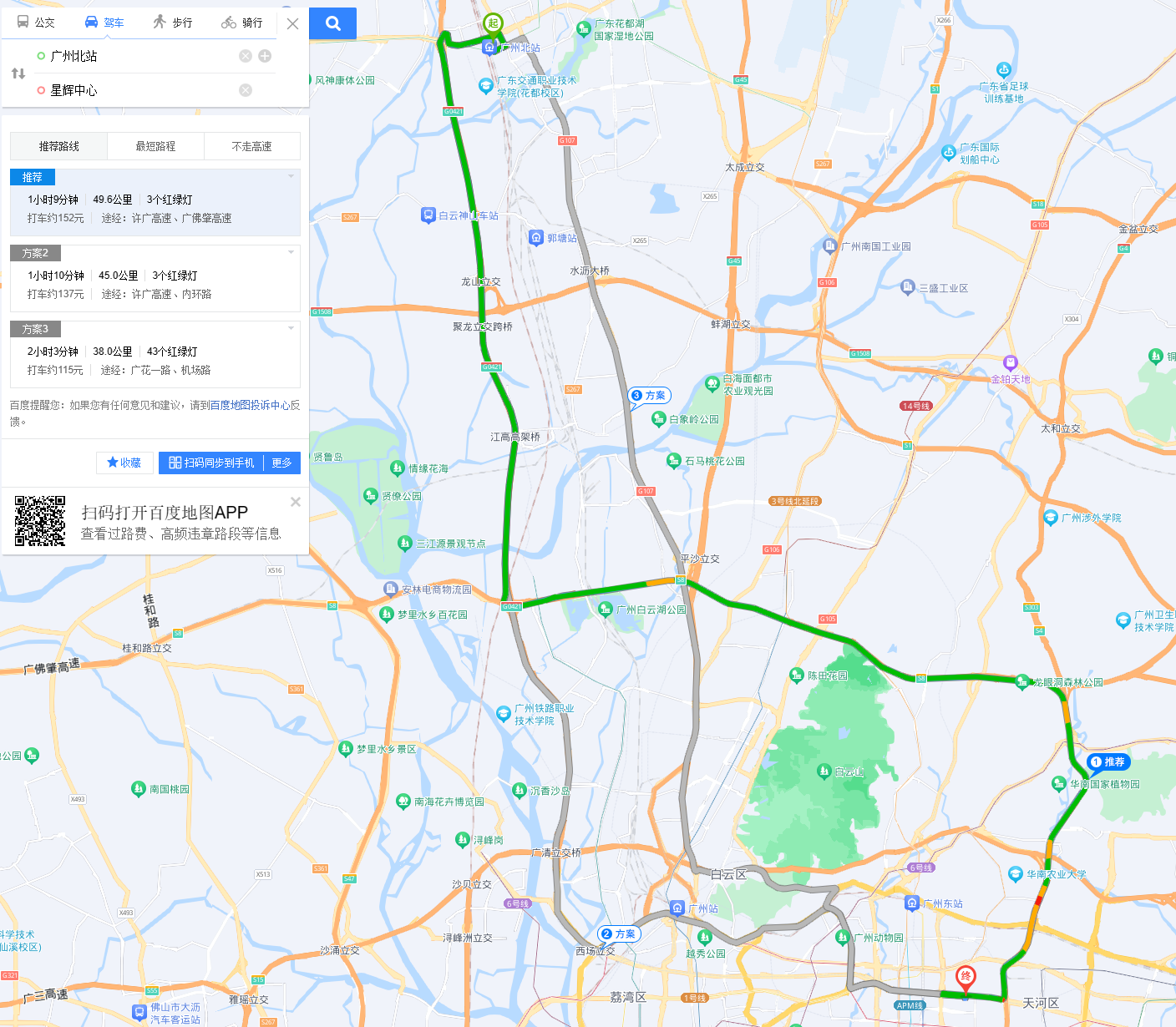 路程:长沙南 ⇒(高铁)⇒ 广州北 ⇒(打车)⇒ 老天拓 ⇒(晓斌的车)⇒ 晓斌家